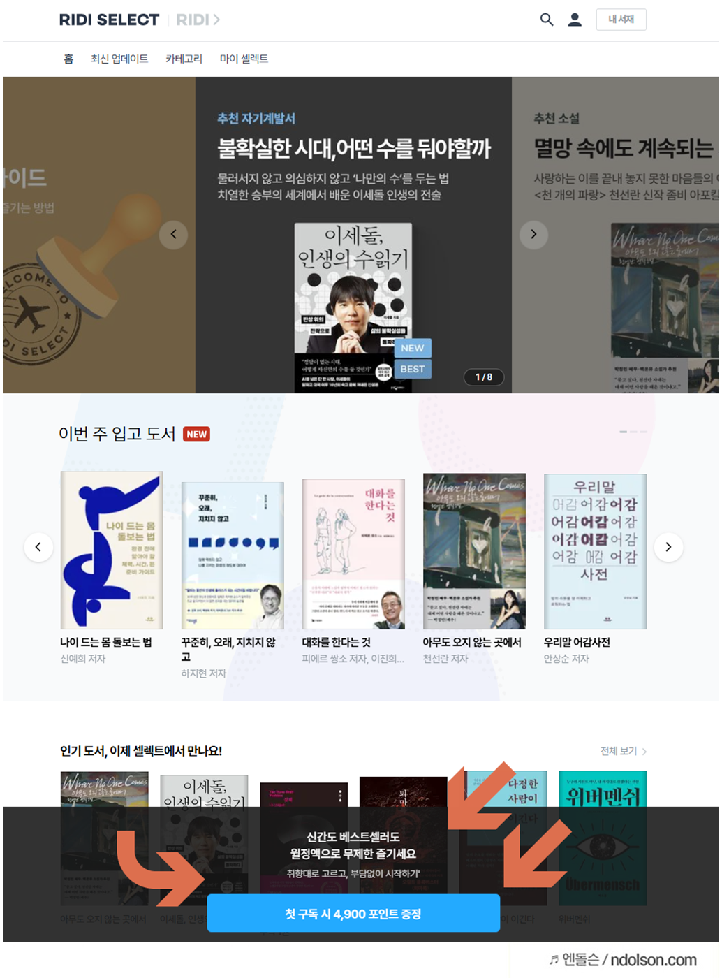 리디셀렉트 무제한 전자책 읽기 후기 리디북스 이용권 코드 선착순 할인 방법