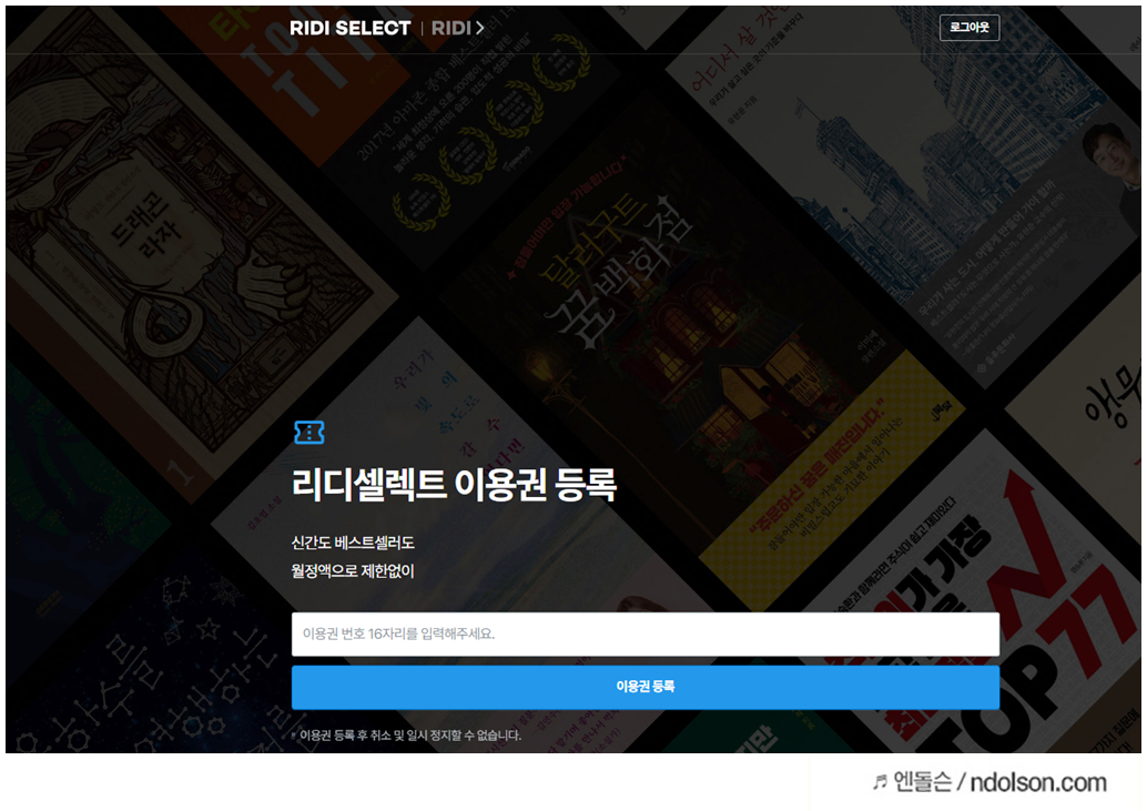 리디셀렉트 이용권 등록이 나옵니다. 코드를 넣어주면 됩니다. 쉽죠?