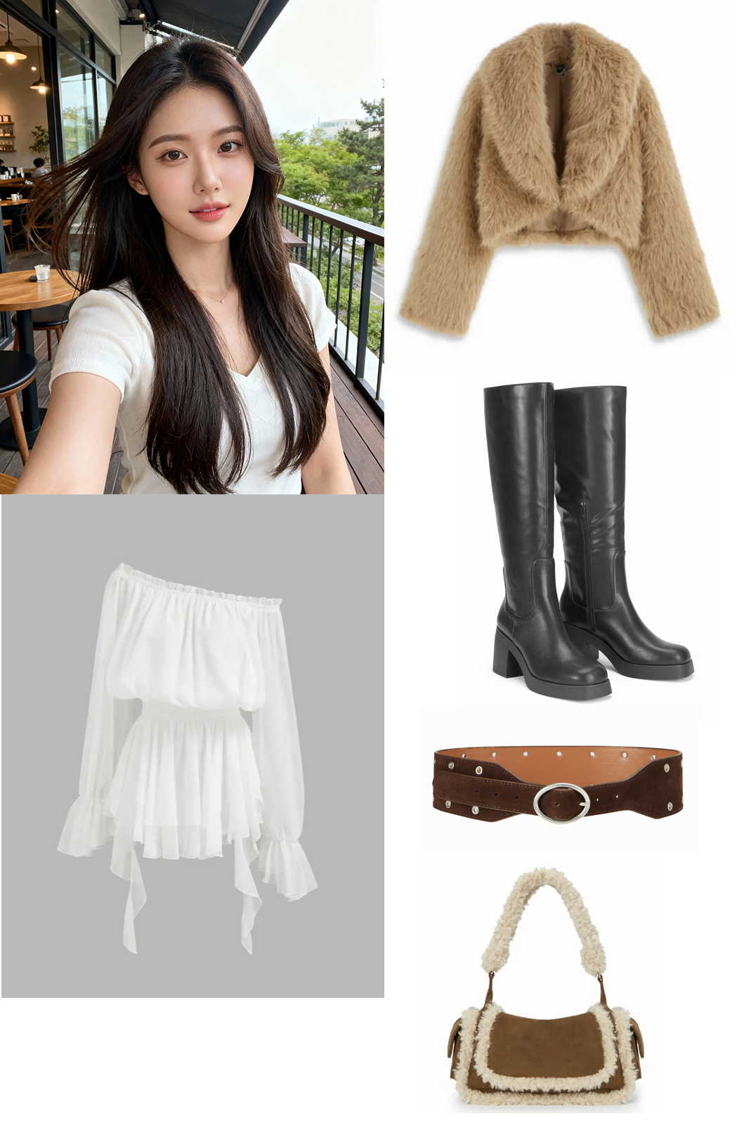 이렇게 모델의 의상 채인지를 위한 마케팅용 의상, 신발, 가방을 인물과 같이 줍니다.