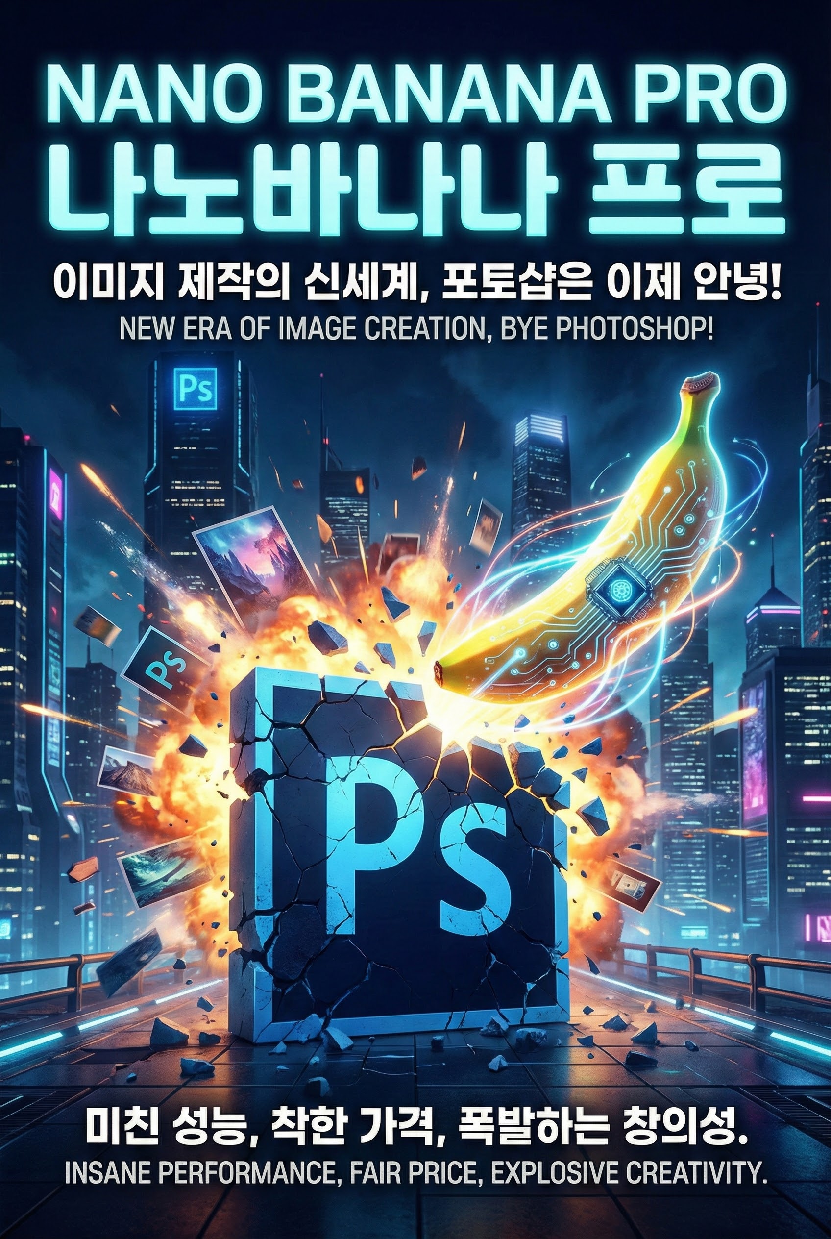 "포토샵이 필요 없다"는 말이 괜한 소리가 아닙니다. 복잡한 레이어 작업 없이 말 한마디로 고퀄리티 이미지를 뽑아내는 세상, 나노바나나 프로로 지금 바로 경험해 보세요! 🍌