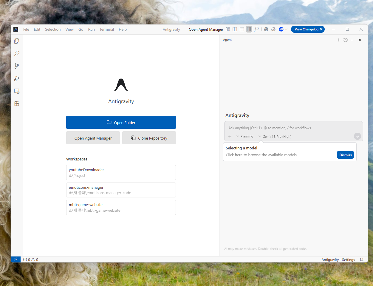 안티그래비티는 표면적으로는 VS Code 기반의 익숙한 IDE입니다. 하지만 그 내부는 Gemini 3 모델을 위시한 강력한 '에이전트(Agent)'들이 살고 있는 플랫폼입니다.