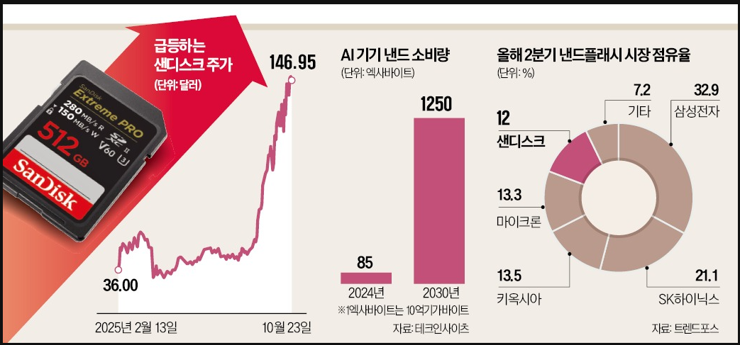 - 온디바이스 AI: AI 기능이 탑재된 PC와 스마트폰의 저장 용량 증가(QLC 낸드 수요)는 소비자용 SSD 강자인 샌디스크에 직접적인 수혜를 줍니다.