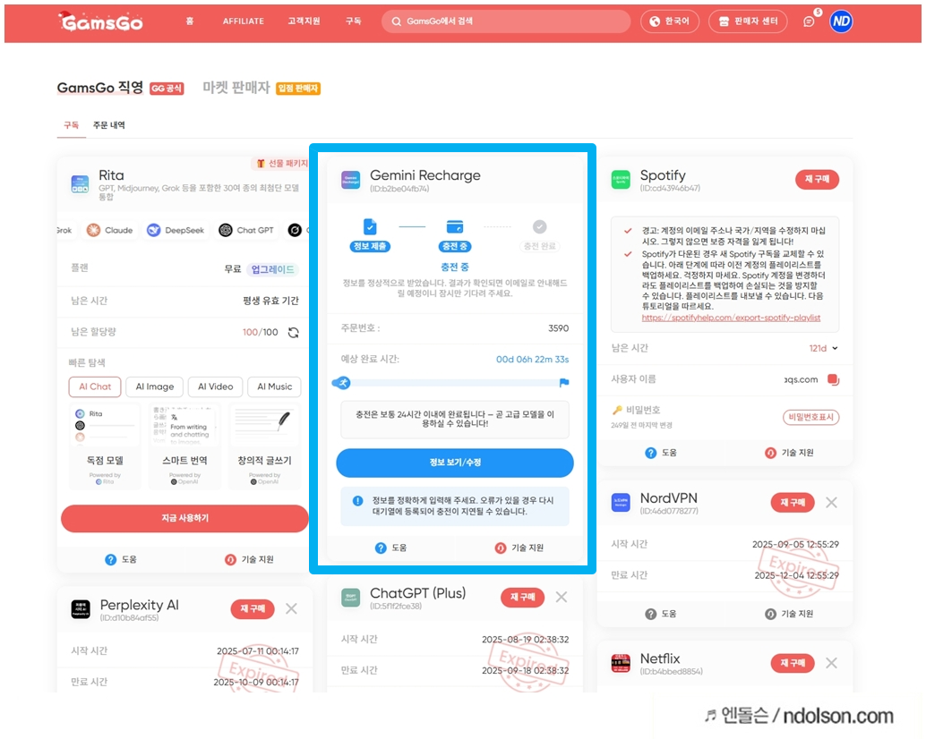 이제 구독 서비스에 가면, 구글 대리충전 요금제가 준비되었습니다. 구글계정 정보만 제공해주면 되는데, 저는 이전에 구글에 광고 중인 구독이 있어 좀 골치가 아팠습니다. 구글의 미청구 금액이 남아 있다면, 완납 또는 제거해버리면 해결됩니다.