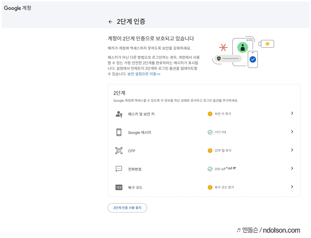 2단계 인증은 따로 끄지 않아도 됩니다.