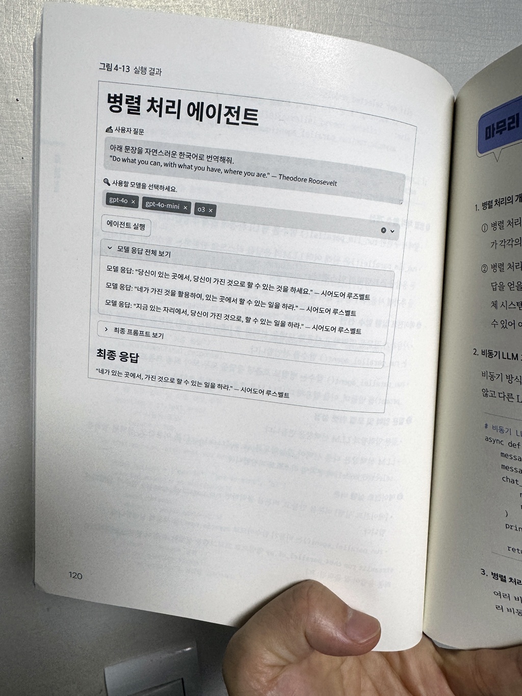 무엇보다 저처럼 사내에서 직접 LLM을 구동하며 실무에 적용하고자 하는 개발자에게는, 이 책이 제시하는 '프레임워크 없는 구현'이 모델의 제약을 넘어 자유로운 커스터마이징을 가능케 하는 열쇠가 될 것입니다. 책에서 설명하는 구조들은 GPT-4뿐만 아니라 저희 서버에 올라간 Llama 등에도 즉시 적용 가능했습니다.