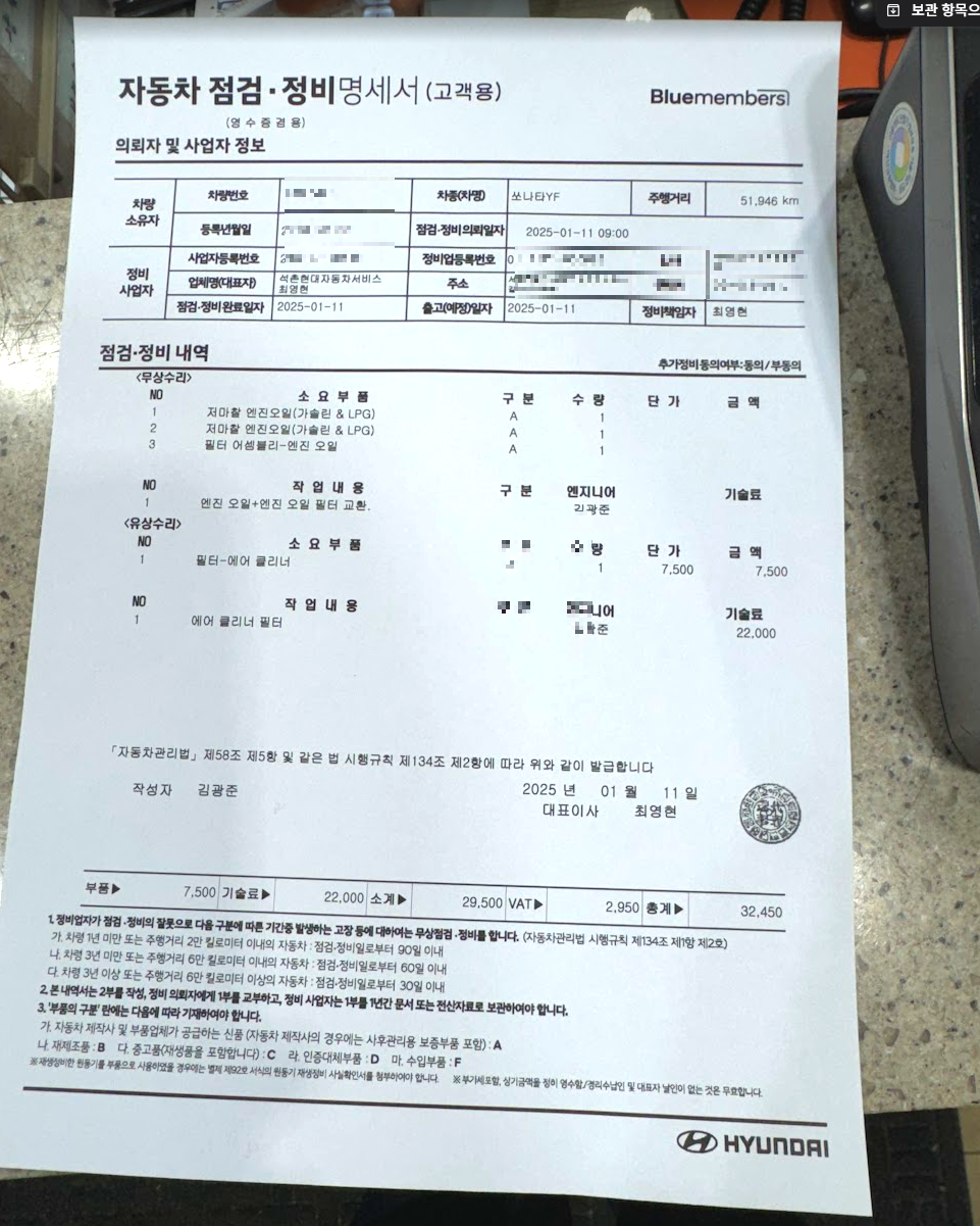 저는 YF 소나타 수리 차 방문했지만, 현대 블루핸즈 자동차 검사비 정보를 미리 알고 가니 견적서 보는 눈이 달라지더군요.