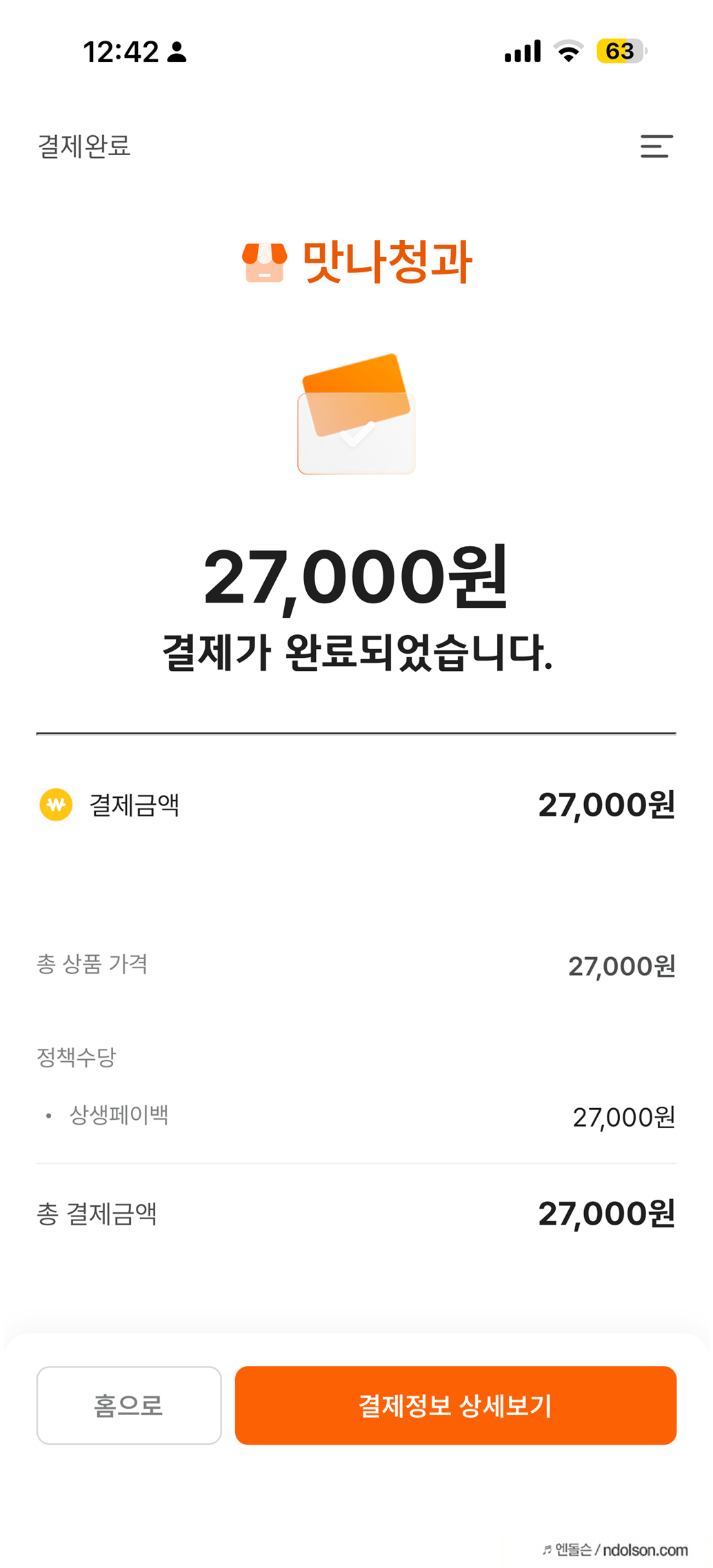 - 사장님께 결제 완료 화면을 보여드리면 됩니다.