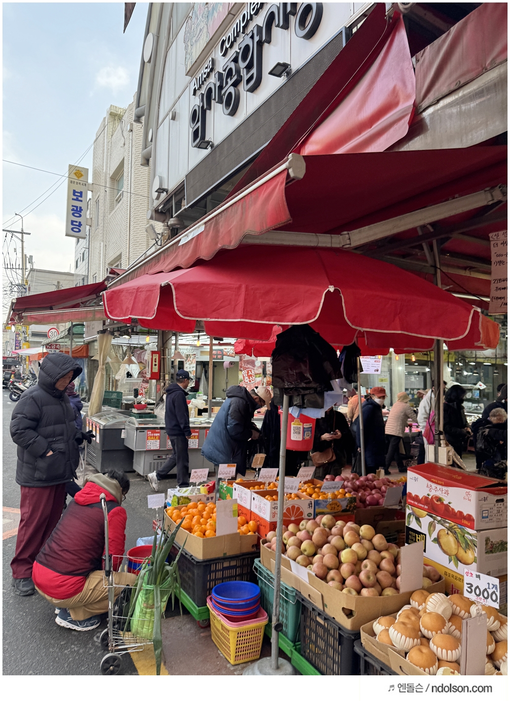 전통시장의 매력은 역시 활기 넘치는 분위기와 눈으로 직접 보고 고를 수 있는 신선함이죠. 시장 입구에 들어서자마자 달콤한 과일 향기가 코를 찔렀습니다.