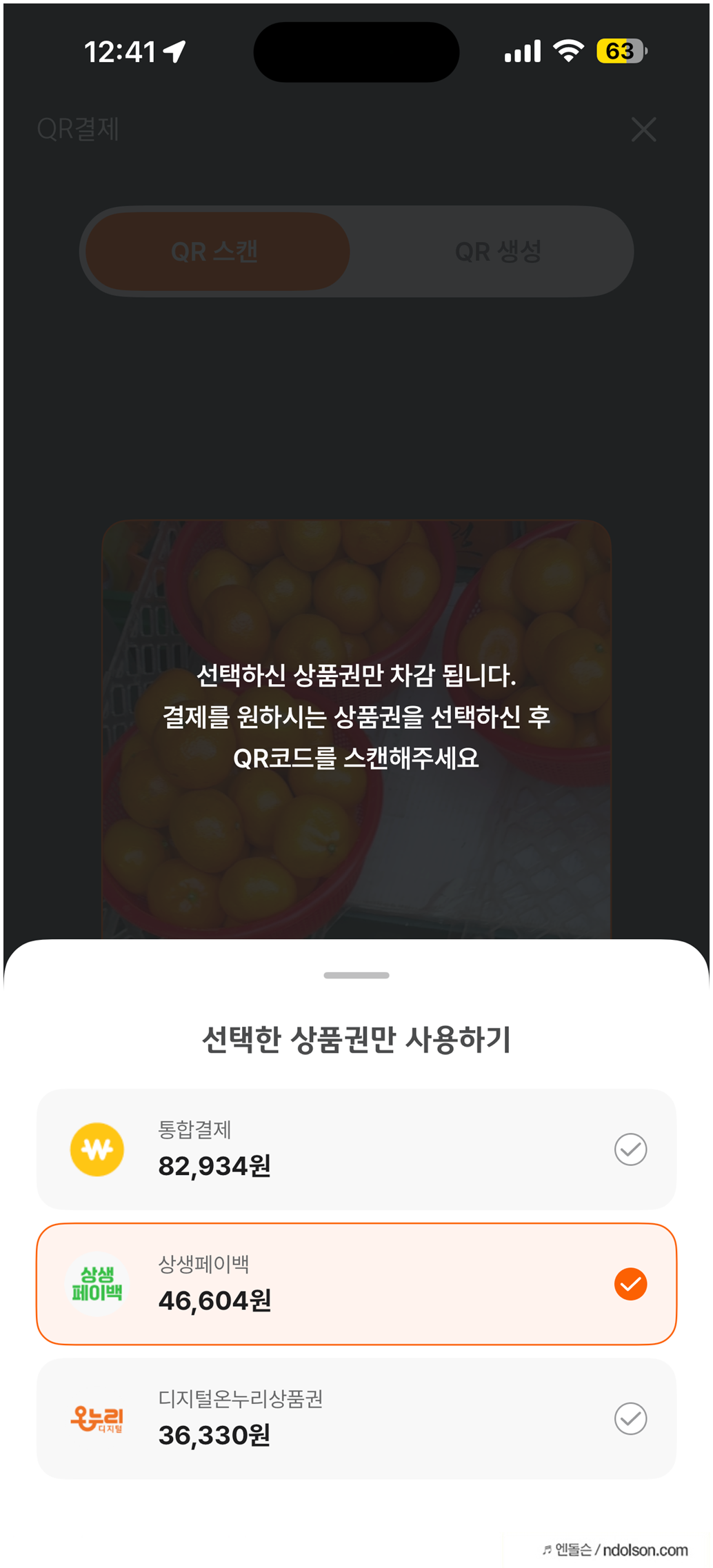 ※ 꿀팁: 앱에 카드를 등록해서 쓸 수도 있지만, 이렇게 QR 결제(카메라 스캔) 방식을 이용하면 지갑을 꺼낼 필요도 없고, 상생페이백 받은 잔액이 우선적으로 혹은 선택적으로 차감되는 것을 눈으로 확인할 수 있어서 훨씬 직관적입니다. 암사시장 상인분들도 이 방식에 아주 익숙하시더라고요.