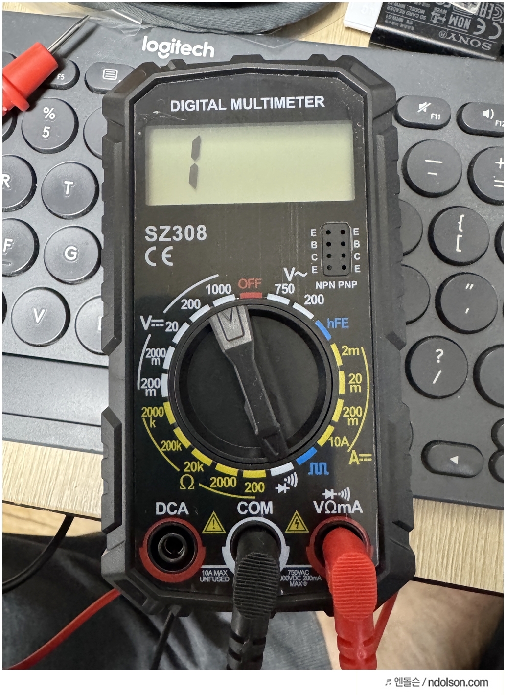 이제 SZ308 테스터기를 도통 테스트(Buzzer) 모드에 맞춥니다. 리드봉을 댔을 때 "삐~" 소리가 나면 연결된 것이고, 소리가 없으면 끊긴 것입니다.