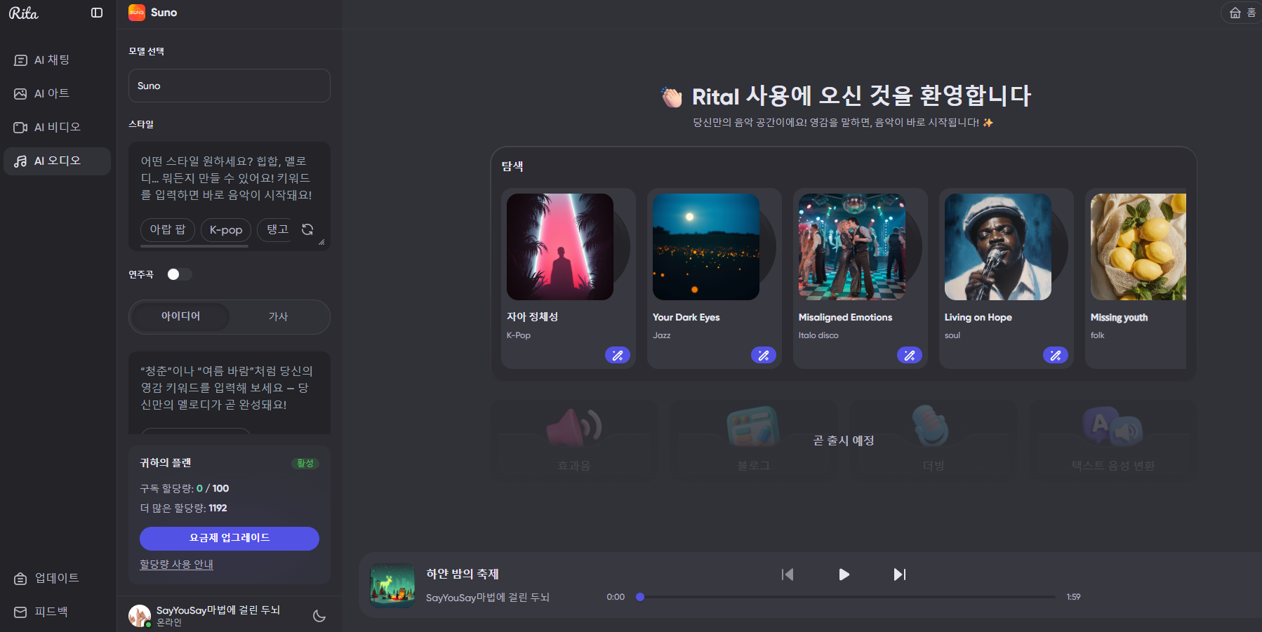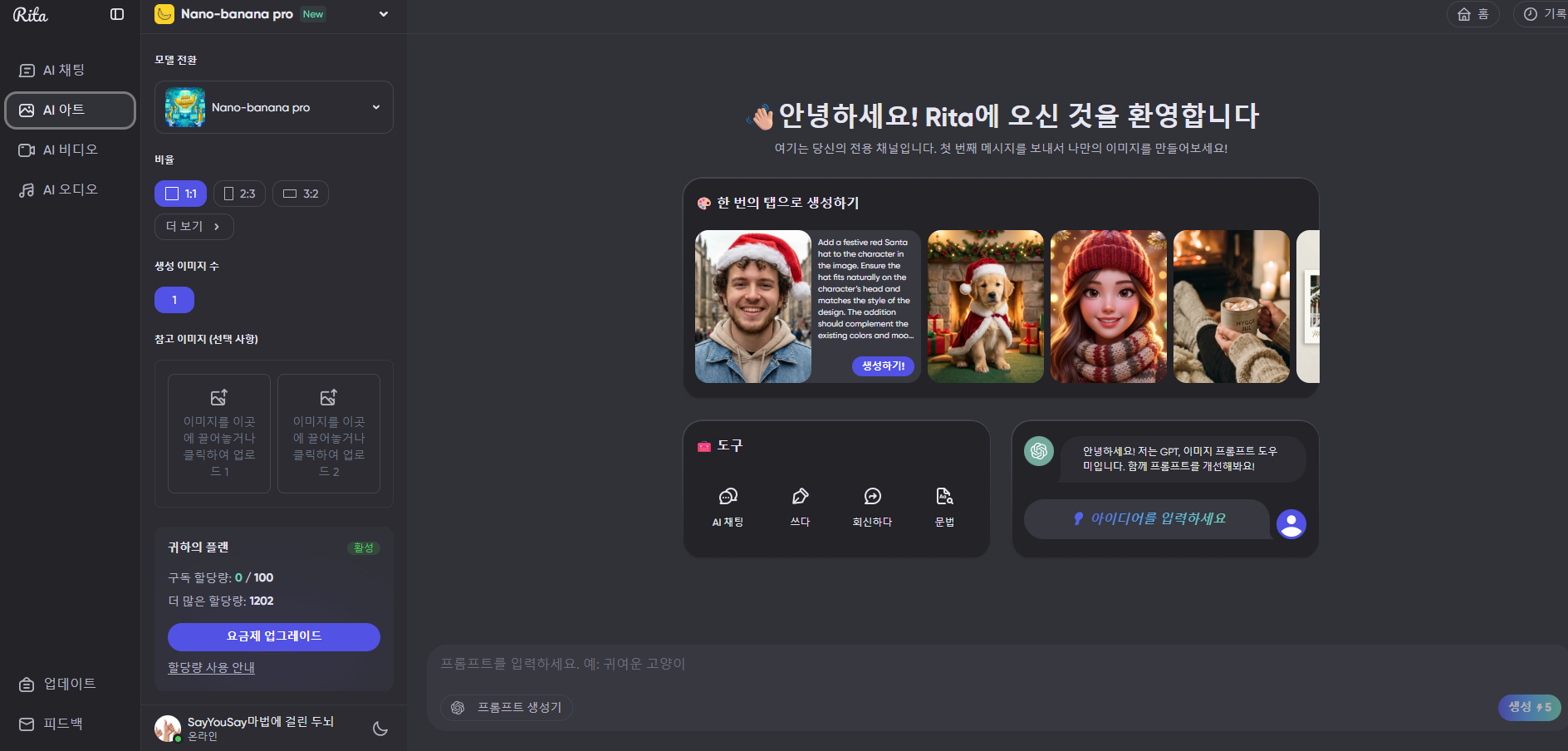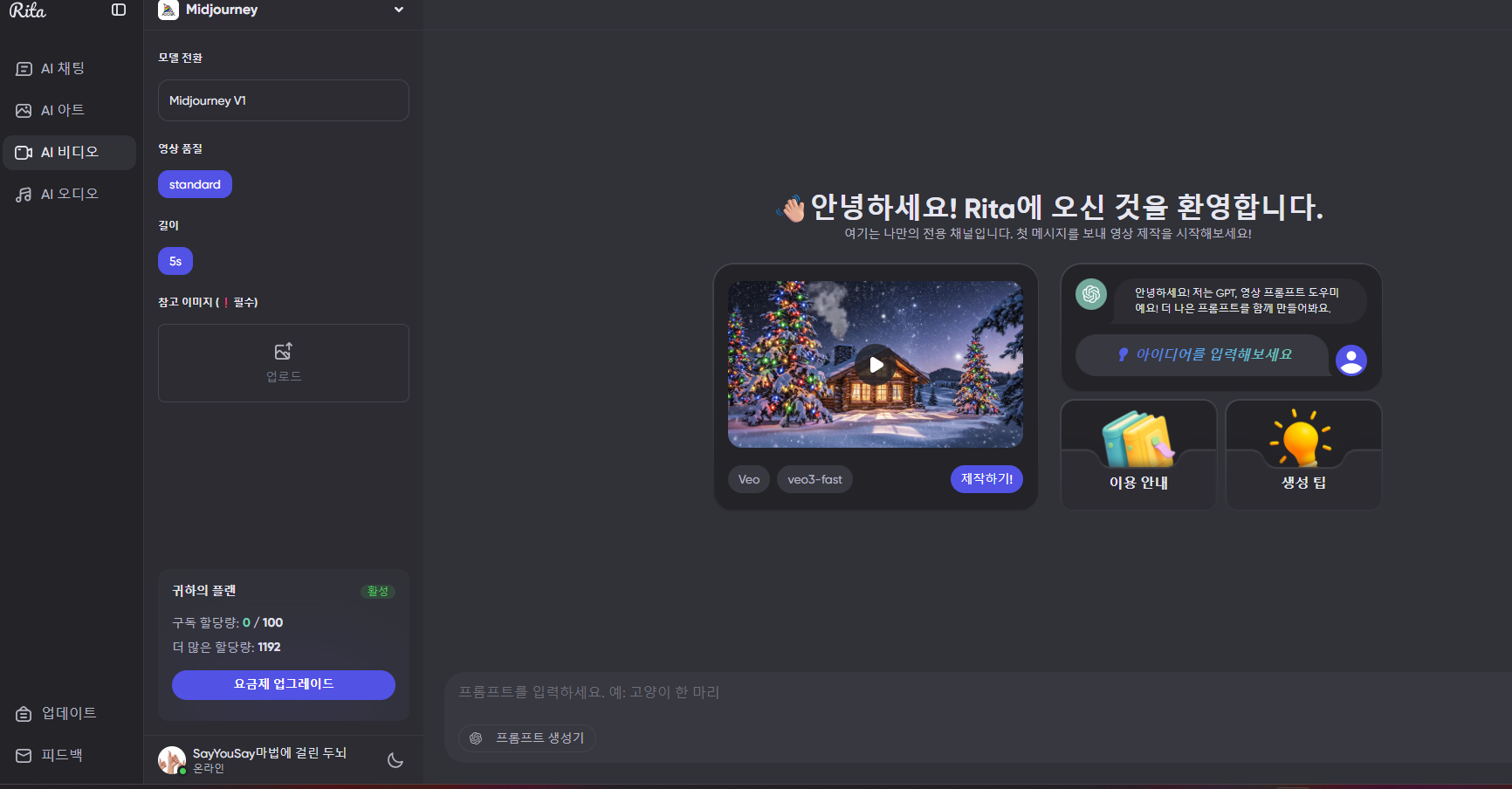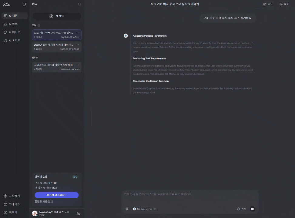 오늘은 이러한 보안 걱정(Privacy)과 비용 부담(Cost)을 동시에 해결해 준 올인원 AI 플랫폼, Rita(리타)의 Mega 플랜(1,200 크레딧) 집중 사용기를 들려드립니다.