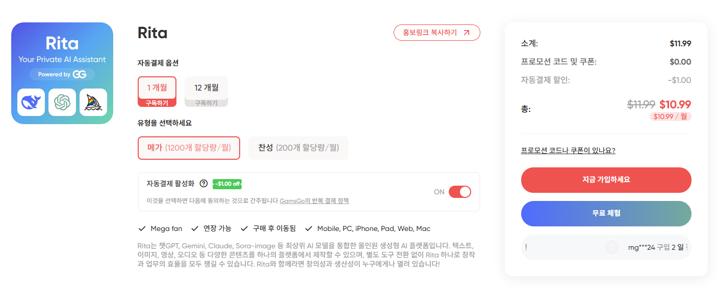#Rita #리타 #GamsGo #겜스고 #AI개인계정 #프라이버시보호 #가성비AI #Mega플랜 #GPT4o #Midjourney #AI구독료절약 #안전한AI #올인원AI #구독다이어트