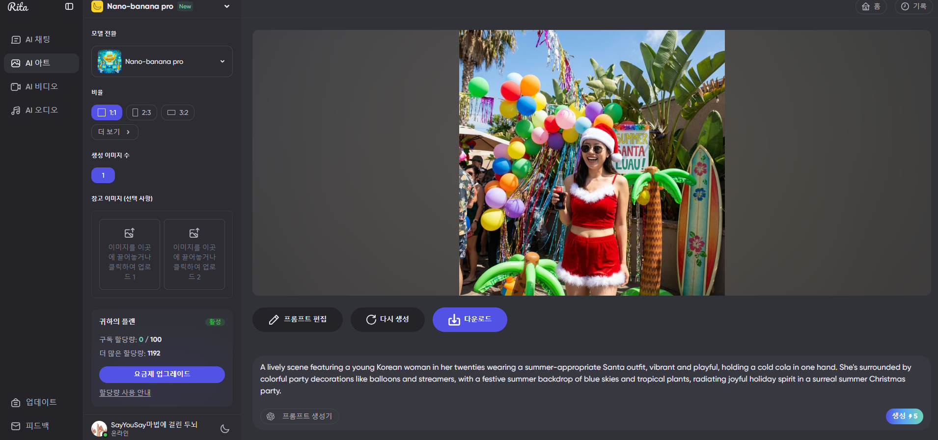 - 영상 생성: 크레딧 소모가 큰 비디오 생성 기능까지 마음껏 테스트해 볼 수 있었습니다.