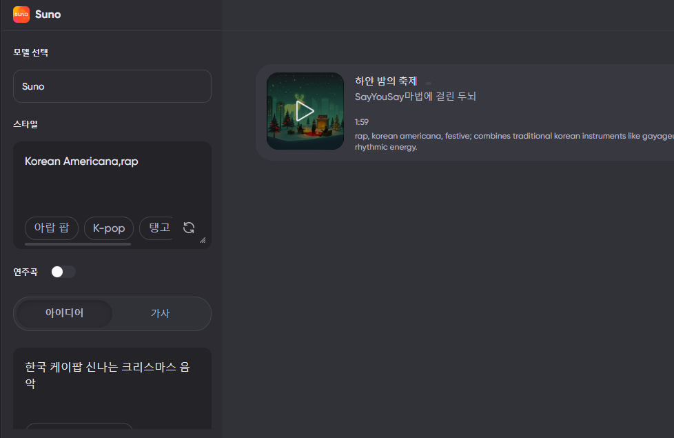 이제 음악도 AI인공지능이 너무 쉽게 만들죠. 그래서 영상이나 배경으로 쓸 음악은 그냥 만들어 버려 저작권 이슈가 없습니다.