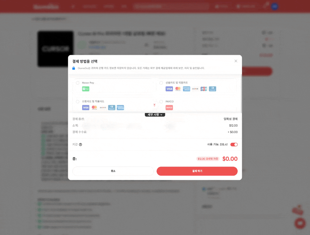 네이버 페이 및 신용카드 등으로 결재가 가능합니다.