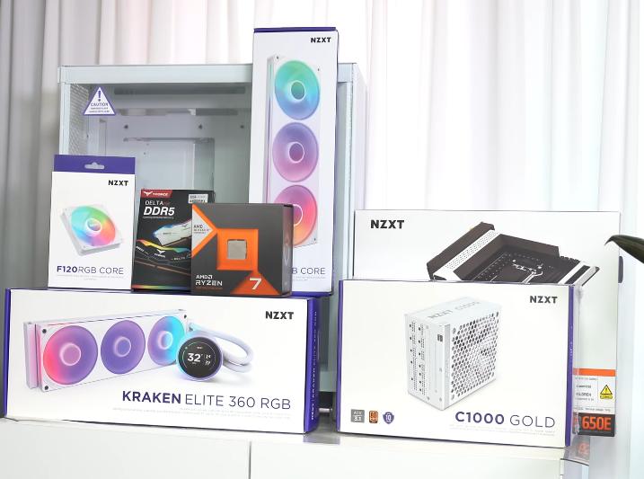 메인보드는 화이트 아머가 매력적인 NZXT N7 B650E를 선택하여 전체적인 톤을 맞추었으며, 케이스는 공기 흐름에 최적화된 NZXT H7 Flow V2 RGB를 사용하여 쿨링 효율을 극대화했습니다. 여기에 NZXT C1000 Gold 파워와 TeamGroup DDR5-6400 CL40 DELTA RGB 화이트 메모리를 더해 안정성과 시각적 화려함을 동시에 챙겼습니다.
