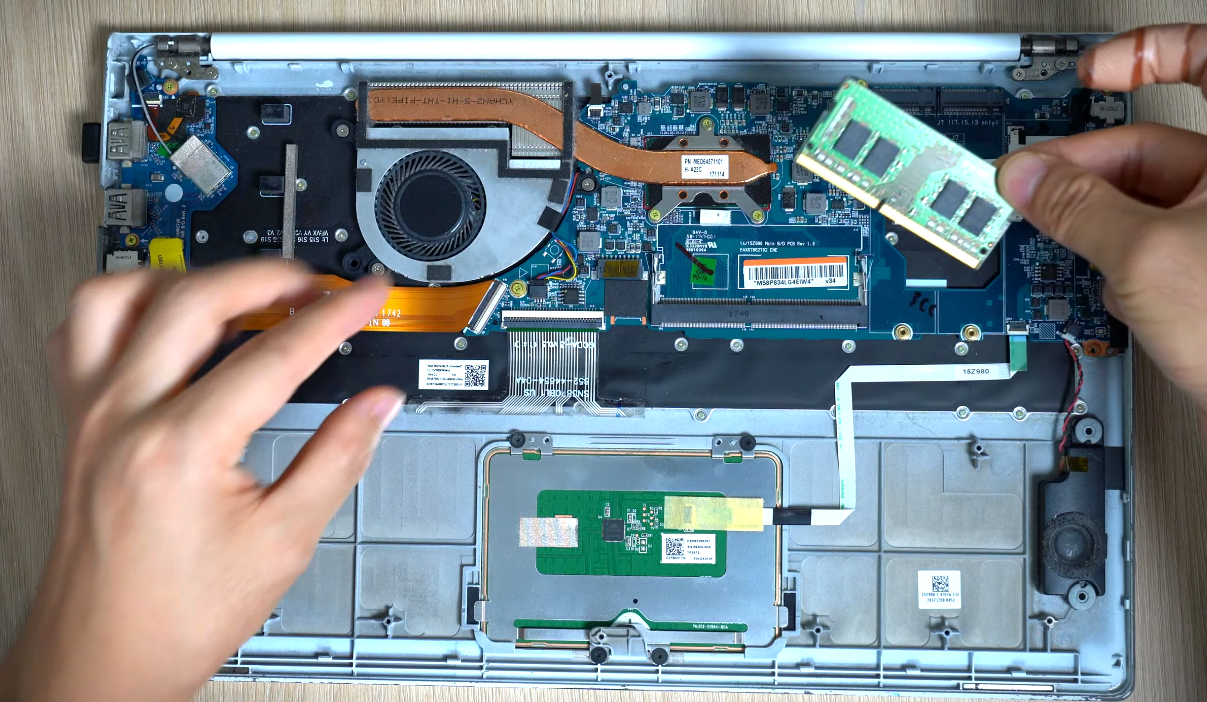 - 주요 부품 탈거: 쿨링팬, 히트파이프, SSD, 그리고 메인보드에 연결된 각종 케이블(디스플레이, 터치패드, 스피커 등)을 조심스럽게 분리합니다.