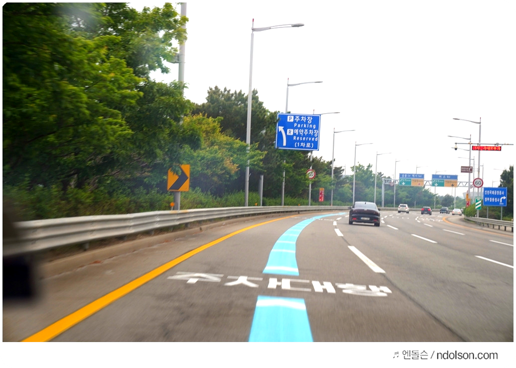 장소가 이전되더라도 인천공항 진입 시 도로 바닥의 색깔 유도선을 확인하는 원칙은 동일합니다. 주차 대행 접수장으로 가야 하는데 일반 주차장으로 들어가 버리면 다시 한 바퀴를 크게 돌아야 하는 불상사가 발생하므로 주의해야 합니다.