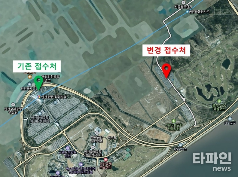 - 변경 후: 인천공항 제1여객터미널 외곽 주차장 내 전용 접수 구역