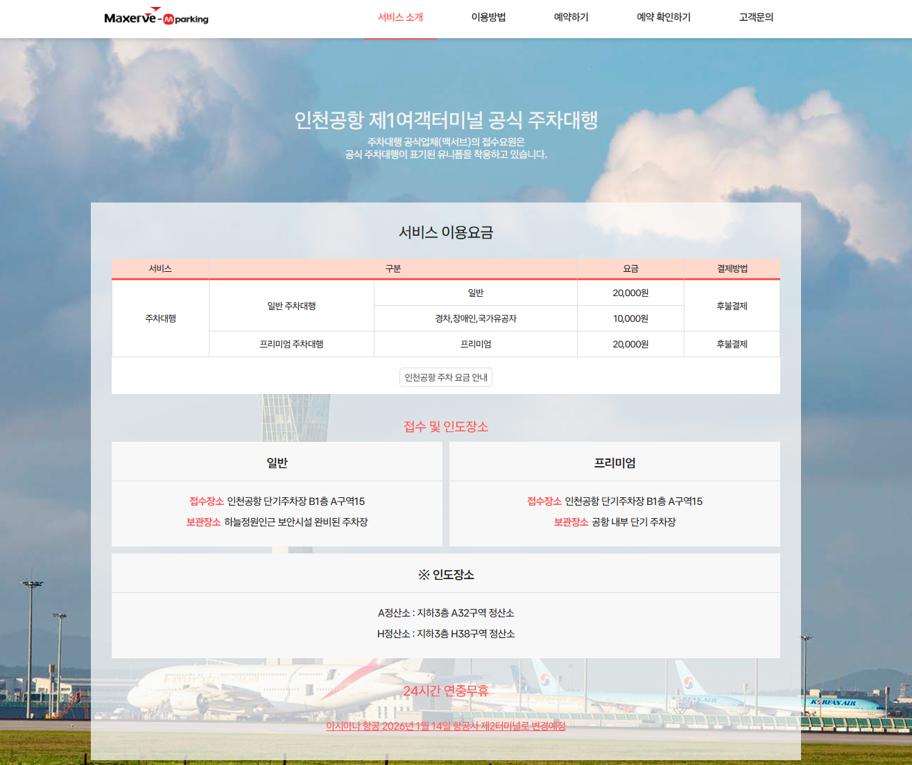 1. 2026년 인천공항 제1여객터미널 주차 대행 공식 업체: 맥서브(Maxerve)