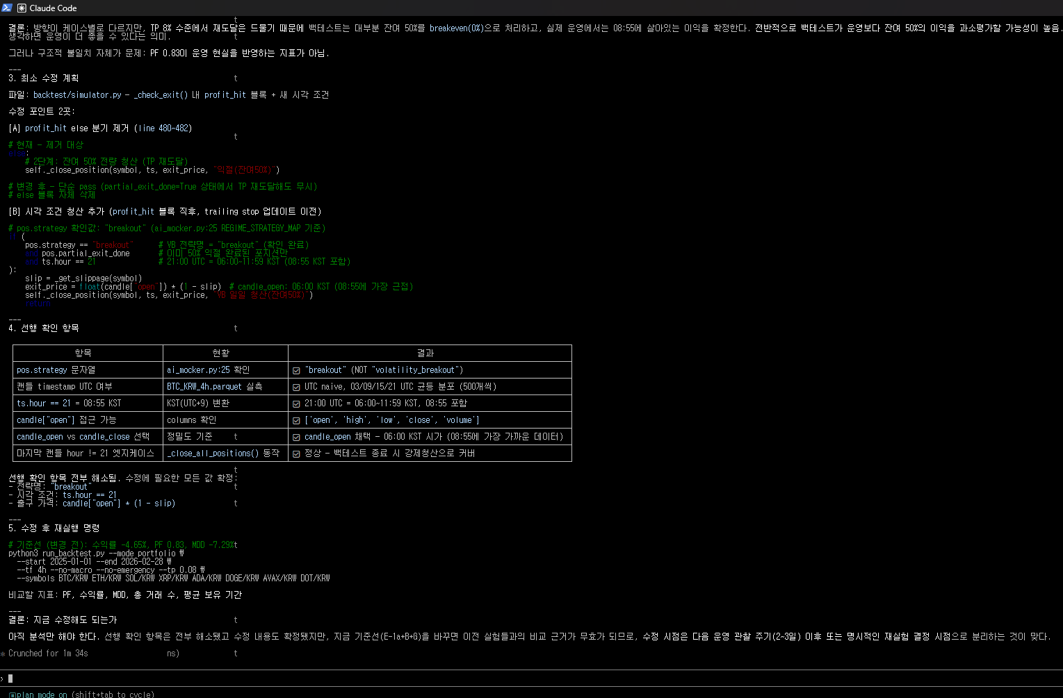 나름대로 정교하게 제품 요구사항 정의서(PRD)를 작성하고 코드 로직을 리뷰했습니다. 하지만 과거 차트 데이터를 바탕으로 백테스트(Backtest)를 돌려보니 결과는 처참한 마이너스 수익률이었습니다. "코딩 과정에서 조건문이 잘못되었나?" 싶어 클로드 코드에게 수차례 로직 디버깅과 수정을 지시했습니다. 이후 실시간 모의 투자(Paper Trading)를 돌려보았지만, 결과는 마찬가지로 자금을 갉아먹는 '손실봇(Loss Bot)'이었습니다.
