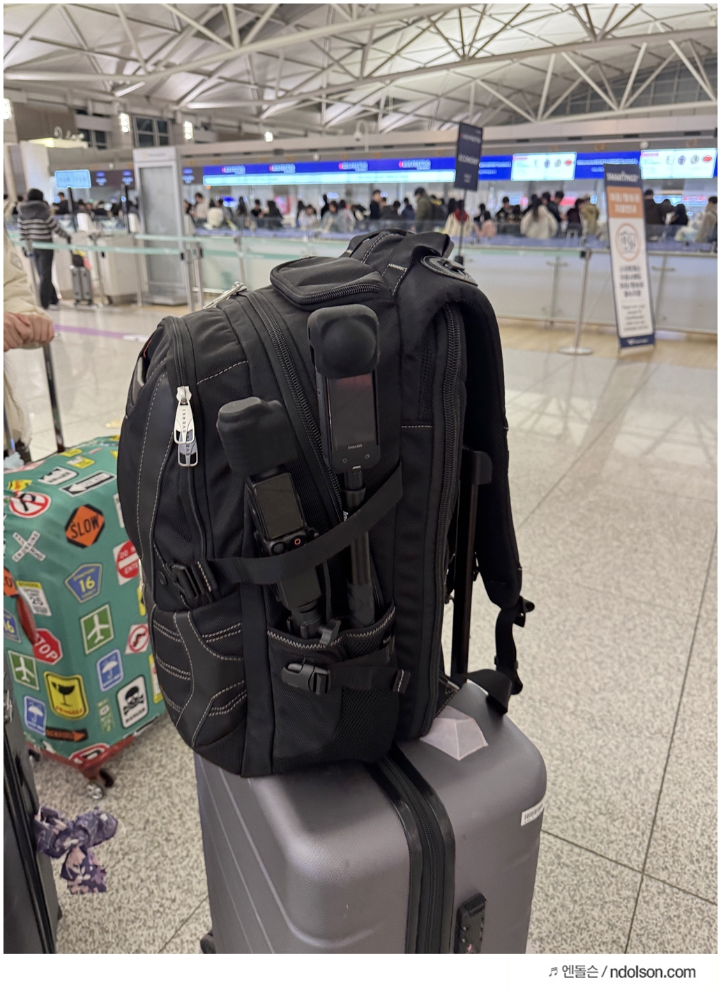 여행 전 필자가 가장 고민했던 부분은 "인스타360 같은 360도 액션캠이냐, 아니면 오즈모 포켓3 같은 전용 짐벌 카메라냐"였습니다. 사실 인스타360은 광활한 화각을 자랑하지만, 일본의 주요 테마파크나 실내 전시장에서는 치명적인 단점이 있습니다. 바로 '셀카봉(Selfie Stick)' 사용에 대한 엄격한 제한입니다.
