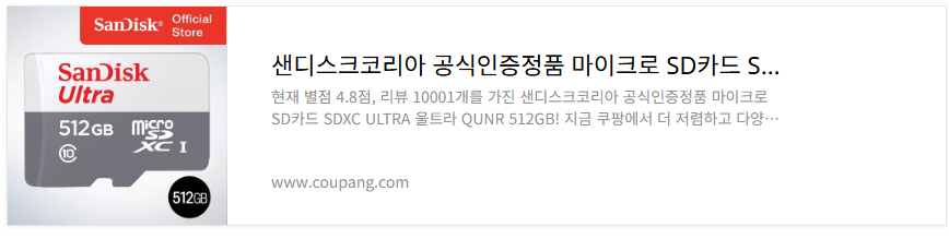 <쿠팡 로켓배송> 샌디스크 마이크로 SD 512GB <구매하기>