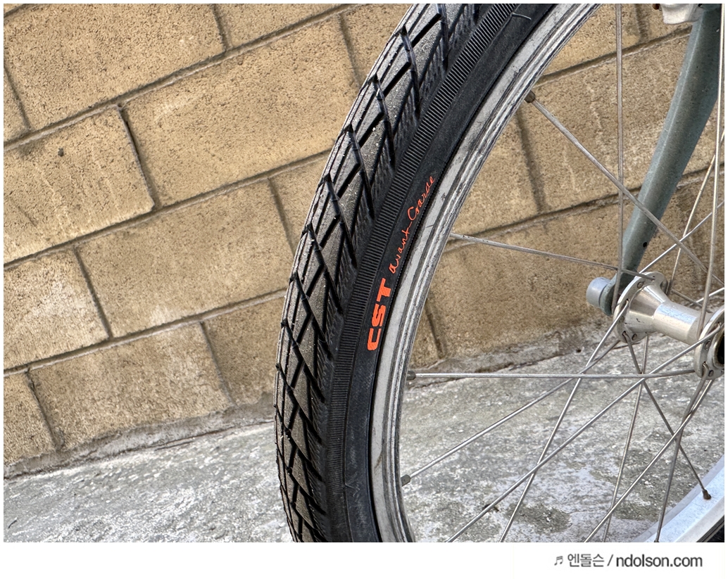 - [타이어] CST C1959 BMX 타이어 (20x1.50 27TPI) 자전거 타이어의 명가 CST 제품입니다. 이전 타이어보다 TPI(섬유 밀도)가 낮아 조금 무거울 수 있지만, 고무가 두꺼워 훨씬 질기고 펑크에 강한 와이어 비드 제품을 선택했습니다. 일상용/마실용으로 튼튼하게 타기 딱 좋습니다.
