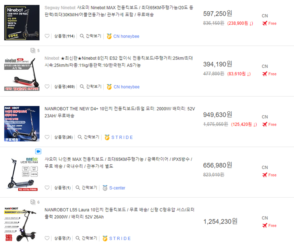 4. 샤오미 Ninebot MAX 전동킥보드 : https://qoo.tn/AxUONR/Q107578318 (나인봇 좋아하고 헤비급 전동킥보드 원하는 사용자라면 추천)