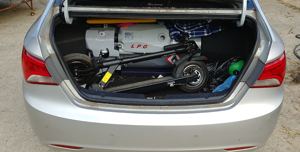 접이식이라 좋아 YF소나타의 트렁크에 그냥 들어갑니다. 핸들까지 접혀서 더욱 활용성이 좋습니다. 단점은 무게가 X5S에서 Y5S 등의 좋은 라인업으로 갈 수록 무겁습니다. 무게가 무거워 헤비급입니다.