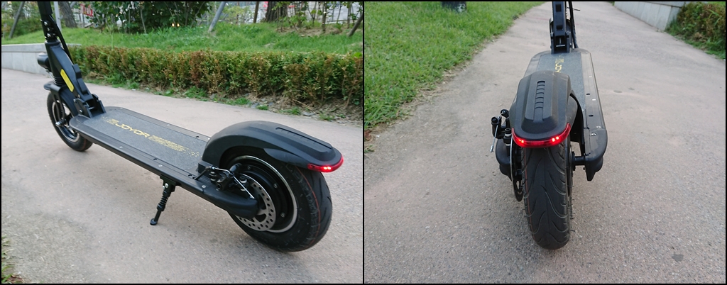 브레이크는 앞서 언급한 것과 같이 전자식이라 편리하지만, 세세한 조절이 어렵고, 내리막에서 밀리는 위험함이 큽니다. 그럼에도 불구하고 가격대비 가성비가 좋은 전동킥보드입니다.