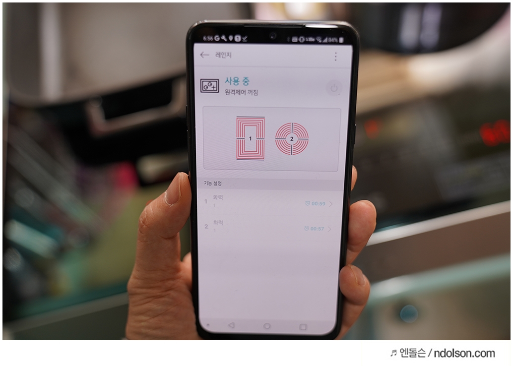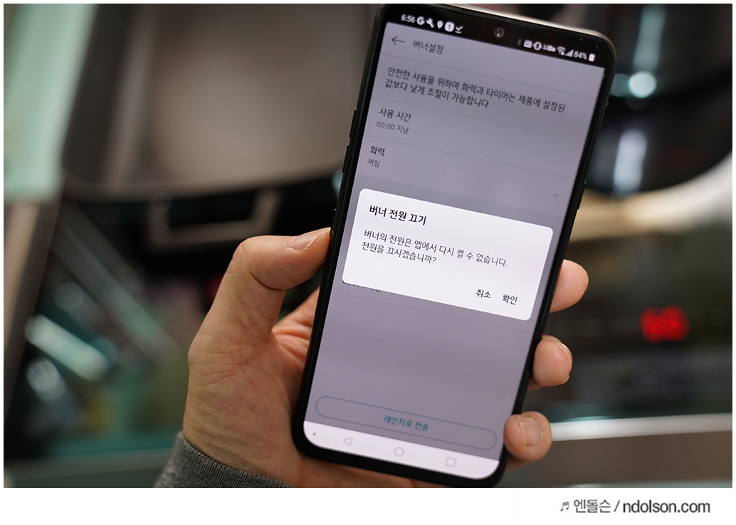 내 LG V50 스마트폰에서 LG 인덕션을 ThinQ앱으로 제어할 수 있습니다. 안전을 위해서 인덕션을 외부에서 켜는 것은 안됩니다. 화력 조절, 시간 조절, 화구 선택이 가능하니 스마트폰으로 쉽게 제어할 수 있습니다.