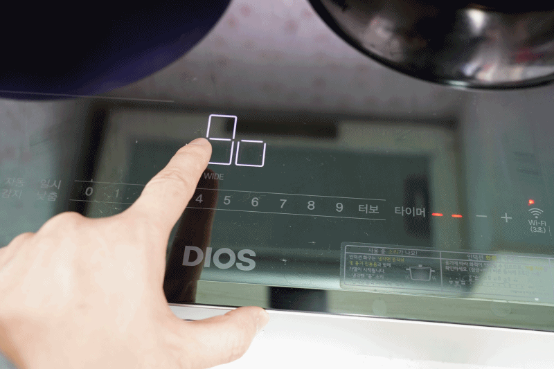 WIDE(와이드) 존이 있는 엘지 인덕션은 3 구로 쓰거나 와이드존을 활성화해서 쓸 수 있습니다. WIDE를 터치하면 와이드로 됩니다. 다시 터치하면 3구가 됩니다.