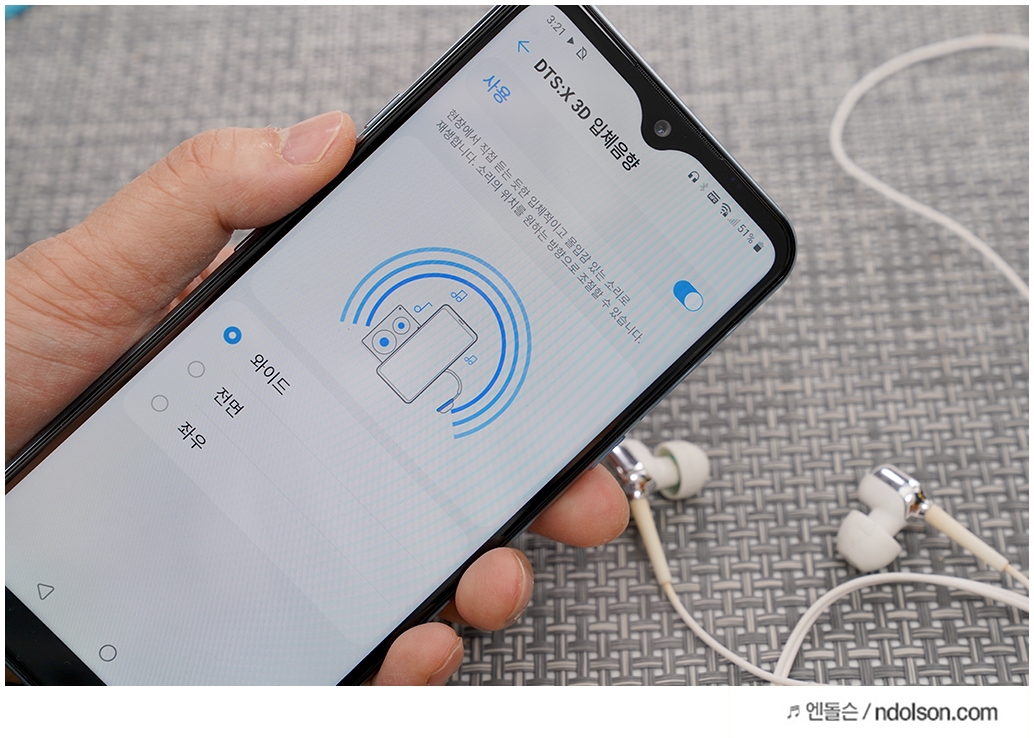 고음질의 음악 감상에 취미가 있거나 음질에 예민하신 분이라면 LG Q51 스마트폰을 추천합니다. 유선/무선 모두 적용되는 DTS:X 3D 입체음향은 와이드, 전면, 좌우로 설정할 수 있어 마치 내 주위에서 음악이 퍼져 나오는 듯한 쾌감의 오디오를 즐기게 해 줍니다. 이건 진짜 놀랍습니다.