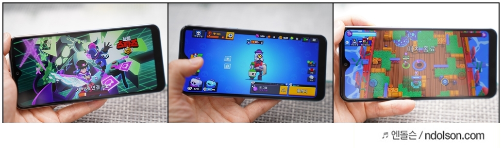 그 외에도 브롤스타즈 등 게임도 빠른 게임 컨트롤과 장시간 게임을 즐겨도 배터리 걱정 없는 스마트폰이라는 생각에 들게 합니다. 하지만 게임 옵션 타협 없이 권장 사양보다 높은 수준으로 게임을 즐기기에는 칩셋 AP가 다소 부족합니다. 그래도 나름 준수한 수준의 옵션 조정과 게임을 즐기기는 충분하다고 판단됩니다.