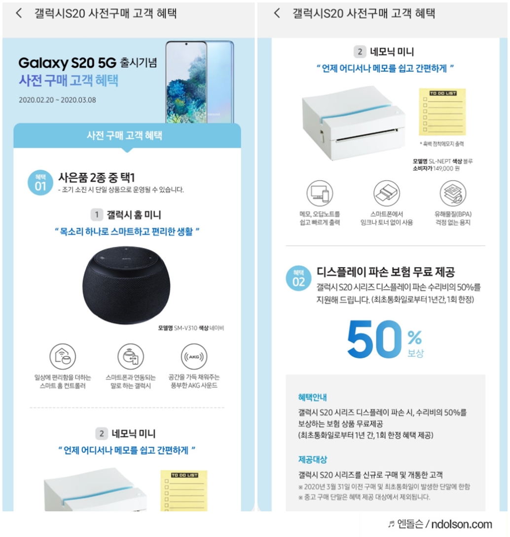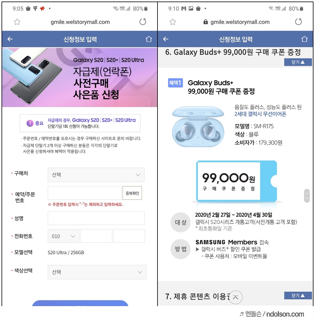 갤럭시S20 사은품 신청 후 갤럭시 홈미니, 버즈 플러스