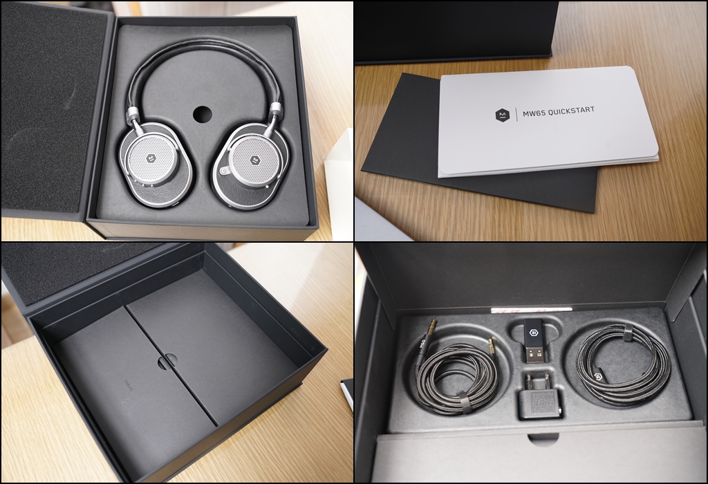 마스터앤다이나믹 MW65의 가격대에 맞게 고급스러운 포장 패키지를 보여 주었습니다. 개별 포장과 블랙으로 고급스럽게 패키지 되어 있었습니다.