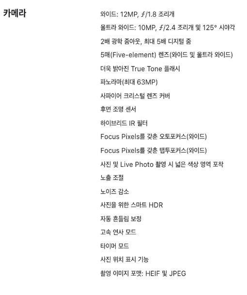 카메라는 후면에 1200만 화소의 광각 카메라와 1000만 화소의 초광각 카메라 탑재되었습니다. 또 공간을 3차원으로 인식해 증강현실(AR)을 구현하는 라이다 스캐너가 추가었습니다.