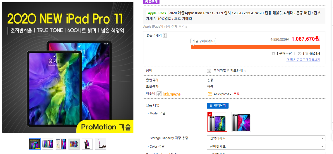 아이패드 프로 4세대를 해외직구해서 구매할 수 있는 정보가 있어서 전해드립니다. 125GB 기준으로 130만원에 구매할 수 있고 별도의 배대지가 필요 없이 무료 배송 받을 수 있습니다.