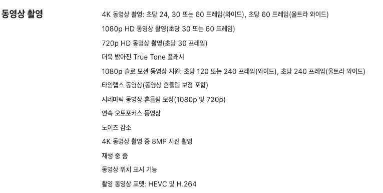 카메라는 후면에 1200만 화소의 광각 카메라와 1000만 화소의 초광각 카메라 탑재되었습니다. 또 공간을 3차원으로 인식해 증강현실(AR)을 구현하는 라이다 스캐너가 추가었습니다.