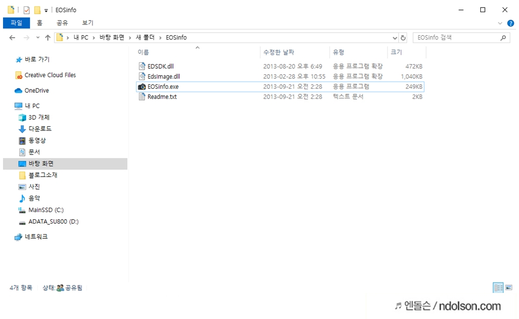 압축 파일을 풀면, EOSInfo.exe 라는 파일이 있습니다.