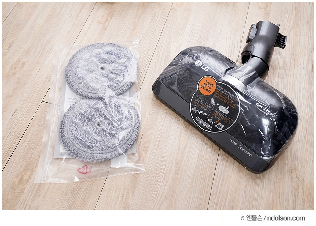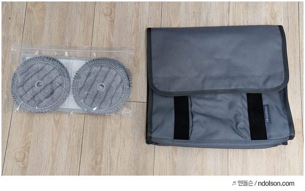 물걸레는 천으로 된 물걸레가 기본으로 들어 있습니다. 또 1회용 물티슈처럼 사용할 수 있는 구성품도 같이 있습니다.