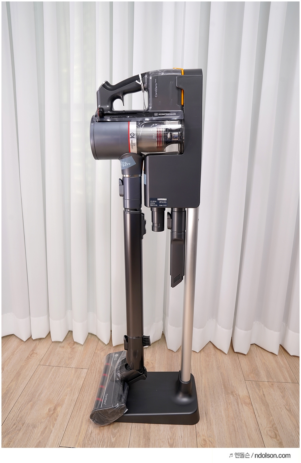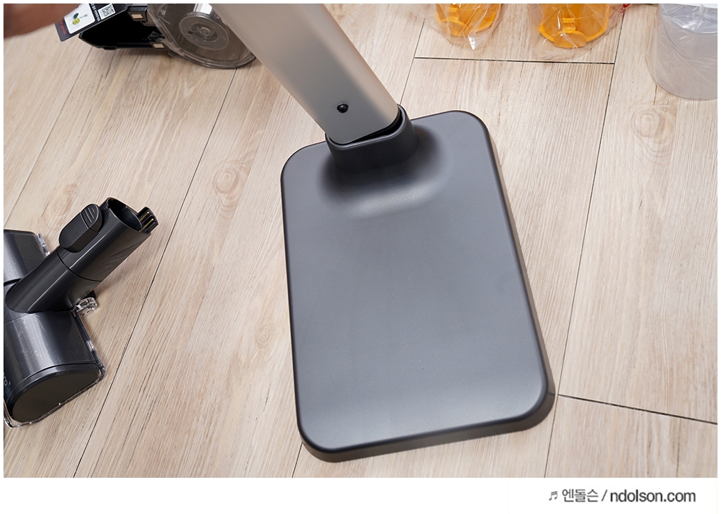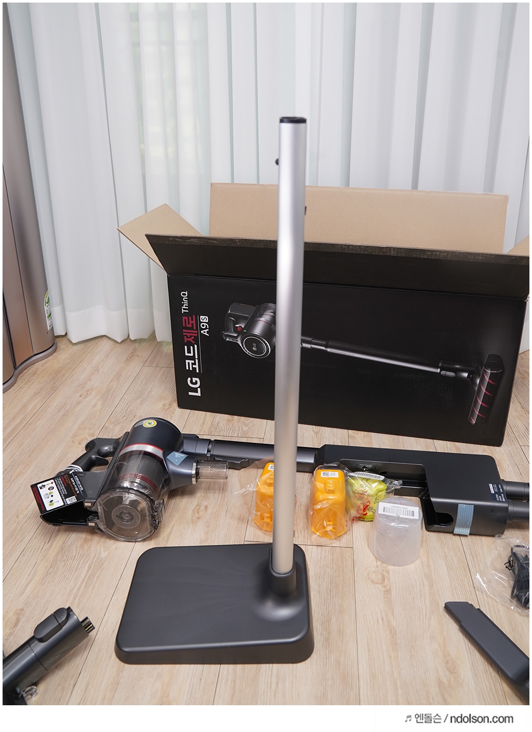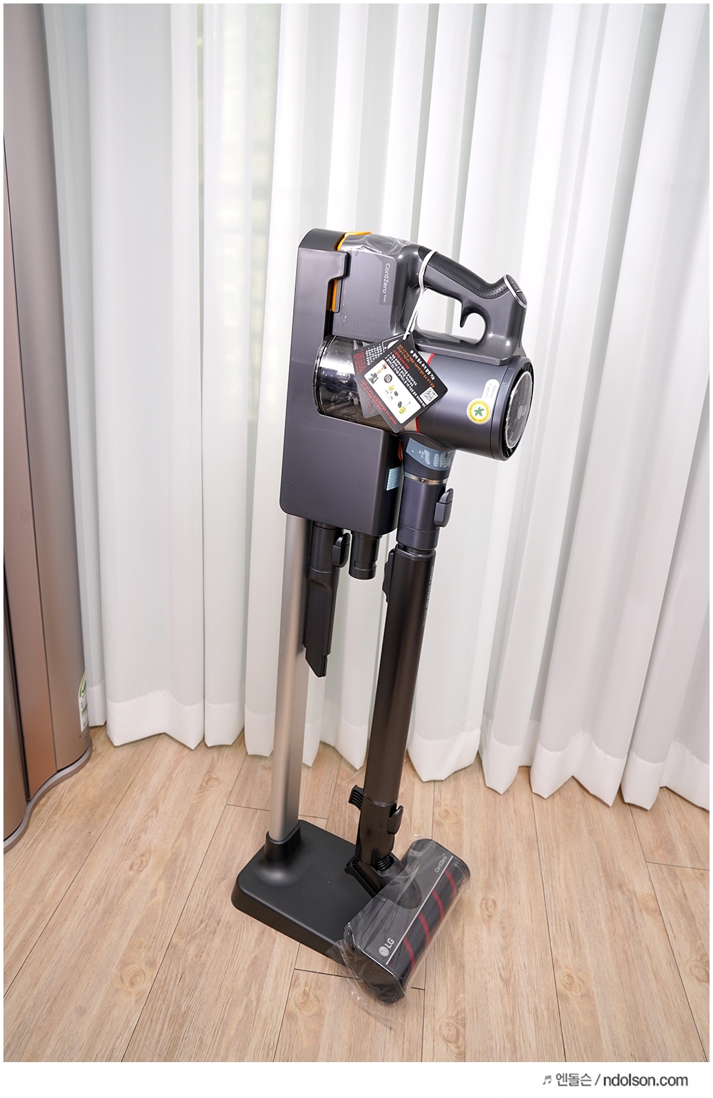 LG A9S 무선청소기 스탠드 조립이 끝났습니다. 바닥 받침대가 무거워 상당히 안정적입니다.