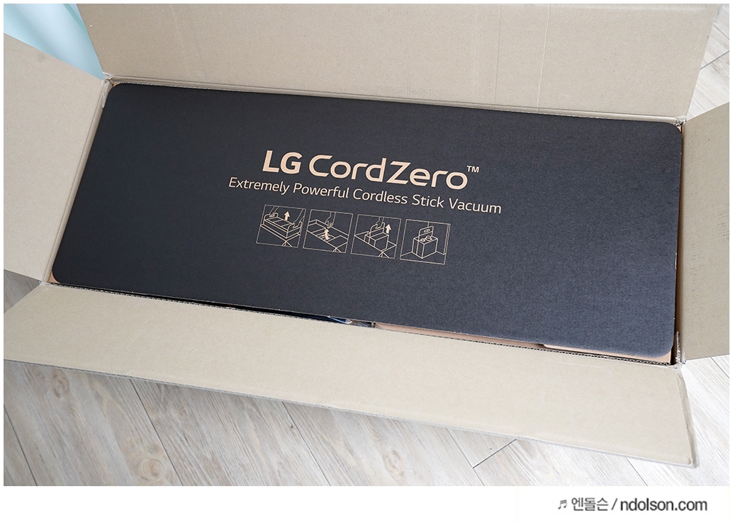 LG 코드제로 ThinQ A9S가 도착하였습니다. 블랙 패키지에 전면 프린팅에서 어떤 제품인지 눈에 띄게 변화된 모습을 볼 수 있었습니다. 아무래도 손쉽게 청소 후 먼지통을 비울 수 있게 추가된 간편 비움 시스템인 레버 형태의 모양에 관심이 집중되실 겁니다.