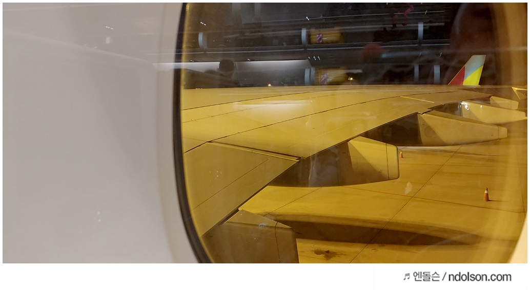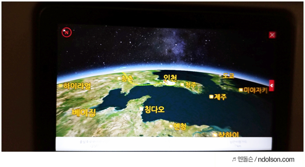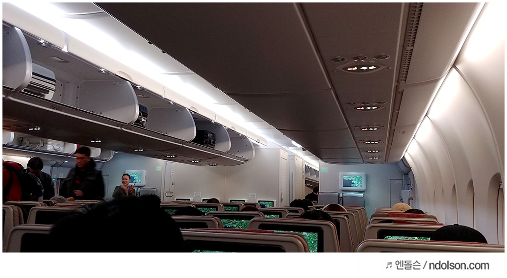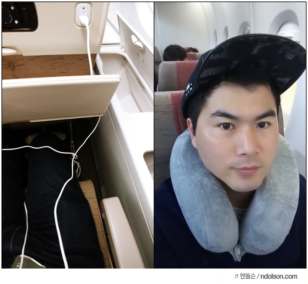 미국 가는 2층 비행기 안에서 촬영한 것인데요. 서울에서 미국까지 비행기 시간으로 13시간 55분이 걸리는 만큼 기내에서 목베개는 필수라고 할 수 있습니다.