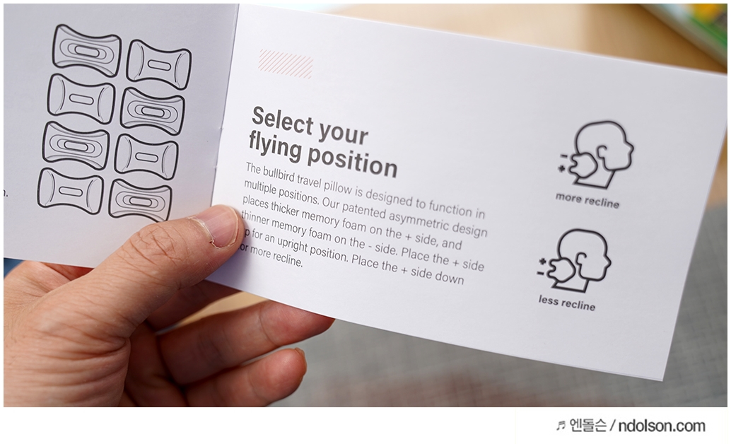 장시간 비행기 여행을 하게 되면, 필수적으로 필요한 것이 바로 목베개입니다. 휴대성도 좋고 쿠션감도 좋아야 하는 것이 중요한데요. 불버드 목베개는 미국 특허를 받은 비대칭 구조로 +/- 표시가 있는 것을 위로 또는 아래로 하냐에 따라 상황에 맞는 편한함을 즐길 수 있습니다.