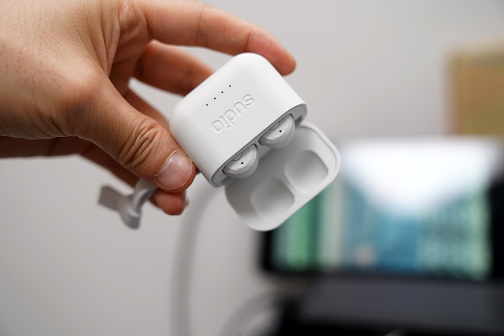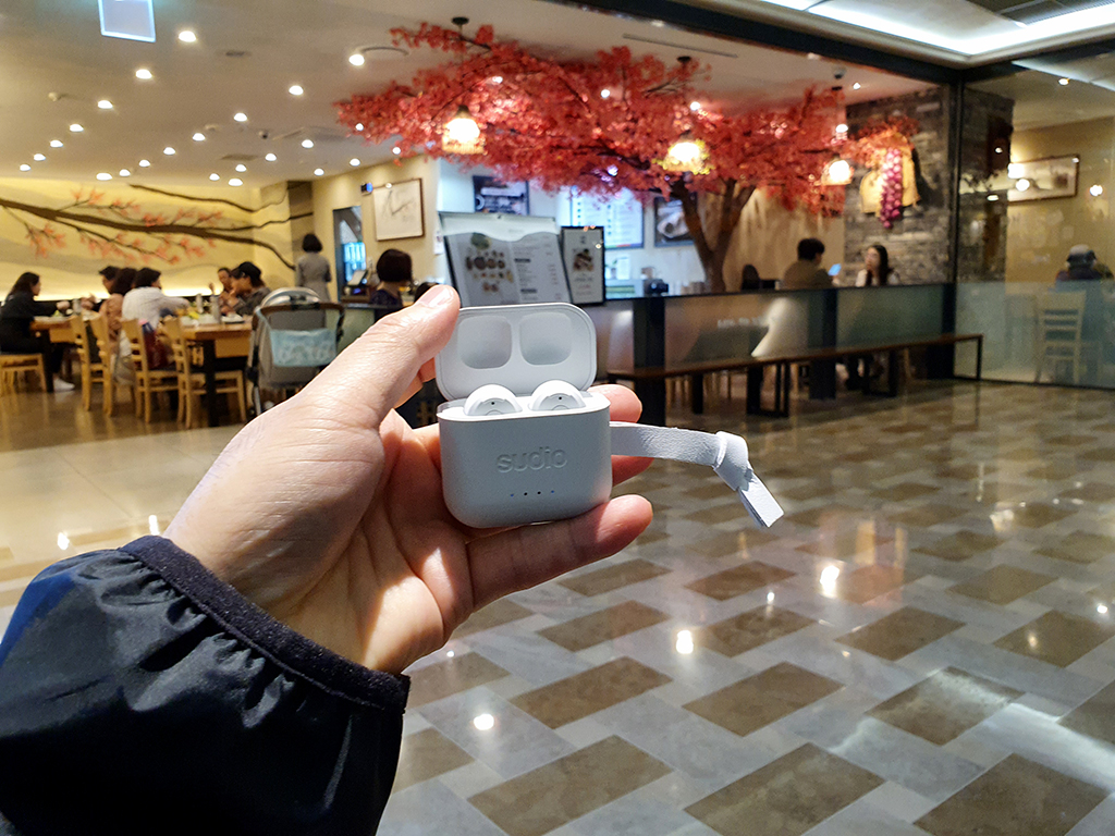 착용감은 빡빡하다! 꽉 낀다! 절대 빠지지 않을 것 같다! 라고 평하고 싶습니다. 에어팟을 써본 경험상 귀에 쏙 들어가지만, 무언가 불안했다면, 수디오 엣트는 그런 느낌은 없고 착용감도 커널팁이라 더욱 편안합니다.