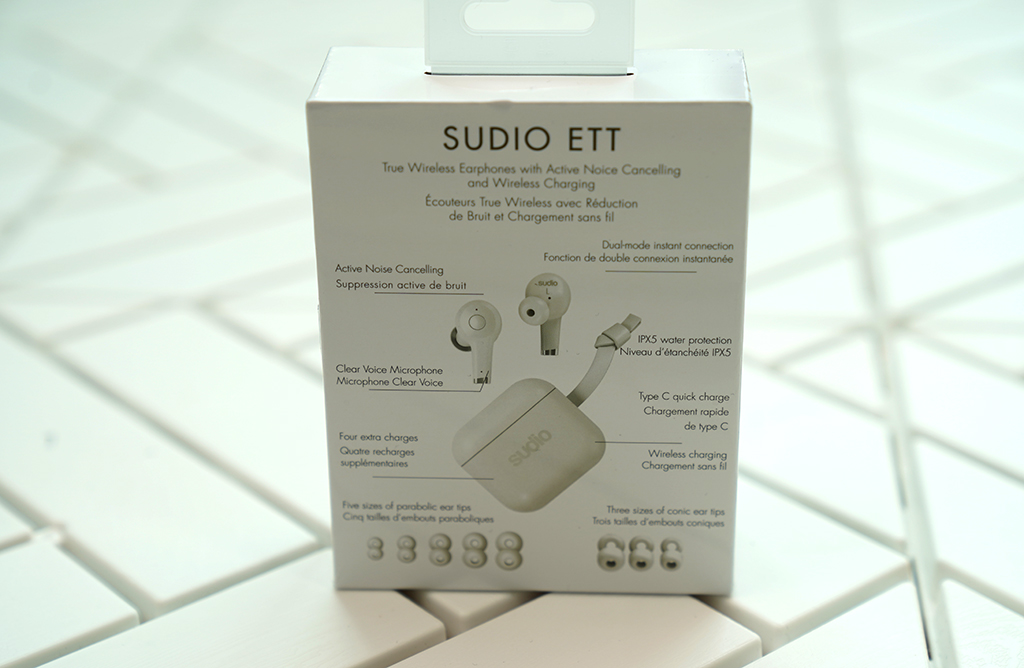 수디오 엣트의 패키지 전면에는 전체적인 제품을 알 수 있게 디자인이 프린팅 되어 있고, 하단에 SUDIO 라는 로고가 있습니다. 후면에는 제품의 설명과 구성품에 대한 설명이 있습니다.