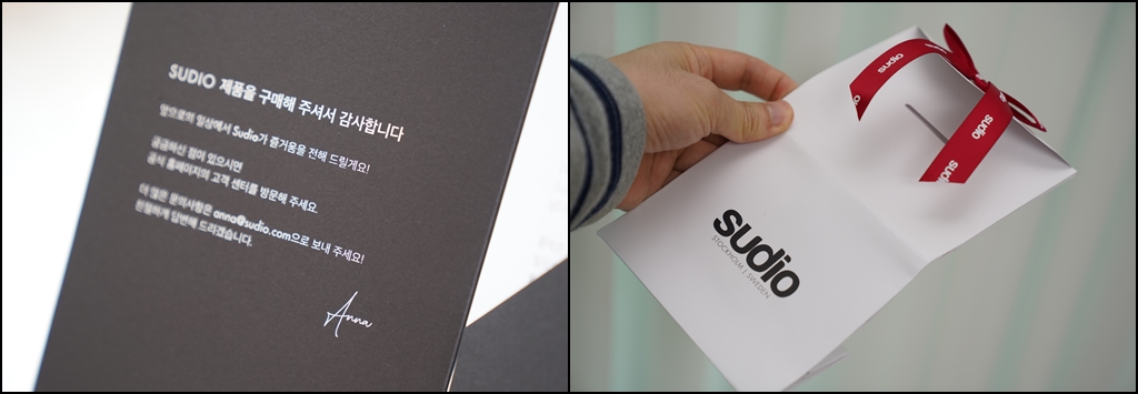 수디오 제품은 개인적으로 디자인과 패키지가 인상적여서 좋았는데요. A/S는 정품 등록을 하면 18개월동안 보증을 받을 수 있다는 카드가 같이 들어 있으니 참고하세요.