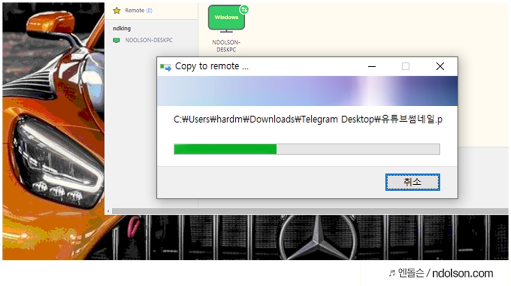 또 파일 복사 및 보내기는 다이얼로그 창으로 제어도 가능하지만, Ctrl+C / Ctrl+V 를 통해서 원격제어 창 안으로 파일을 바로 넣고 가져올 수 있습니다.